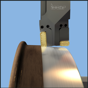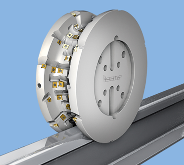 在返修磨損的鐵路車輪時,采用龍門式CAM或CNC對輪機床。這些機床能夠同時切削左右兩側車輪,確保高輪廓精度并保持車輪的尺寸和型面。對于返修加工,ISCAR提供標準刀具,配備可互換刀夾,適配切向夾緊的可轉位刀片(通常為LNMX型,尺寸19和30毫米)。這些刀片提供多種幾何形狀和硬質合金牌號,以適應輪對的不同形式和尺寸。(圖2)