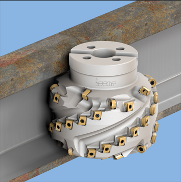 在粗銑加工中,配備立裝刀片的TANG MILL系列專用銑刀,是加工錳鋼交叉軌及過渡軌的理想選擇。該銑刀的正前角設計能顯著降低切削力,并提升難以加緊的軌道件加工時的刀具穩定性,同時實現平滑切削效果。